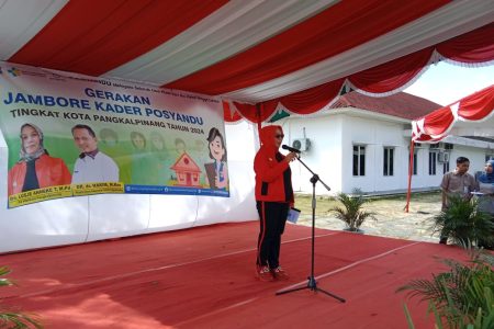 BABELTERKINI.COM, PANGKALPINANG -Penjabat Wali Kota Pangkalpinang, Lusje Anneke Tabalujan hadiri Gerakan Jambore Kader Posyandu tingkat Kota Pangkalpinang tahun 2024 oleh Dinas Kesehatan Kota Pangkalpinang di Halaman Kantor Wali Kota Pangkalpinang, Jumat (19/7/2024).