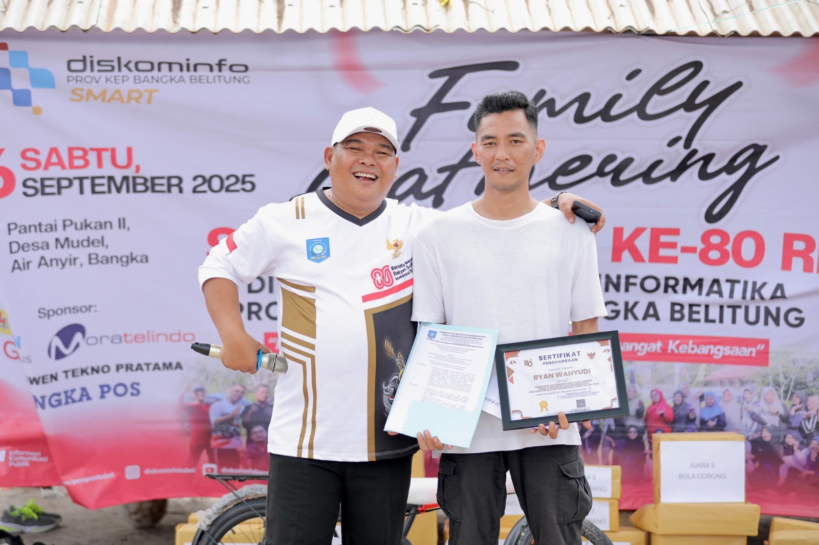 Bertepatan pada hari Family Gathering, Sabtu (6/9/2025), di Pantai Pukan II, Merawang, Kabupaten Bangka, Haris menepati janjinya, dan mengumumkan pemenang, serta memberikan uang tambahan TPP sebesar 1 bulan yang didapatkannya sebagai Plt Kadiskominfo kepada Rian Wahyudi, Pegawai Bidang IKP Diskominfo yang dinyatakan selaku pemenang pembuat Logo Diskominfo Babel yang baru tersebut.