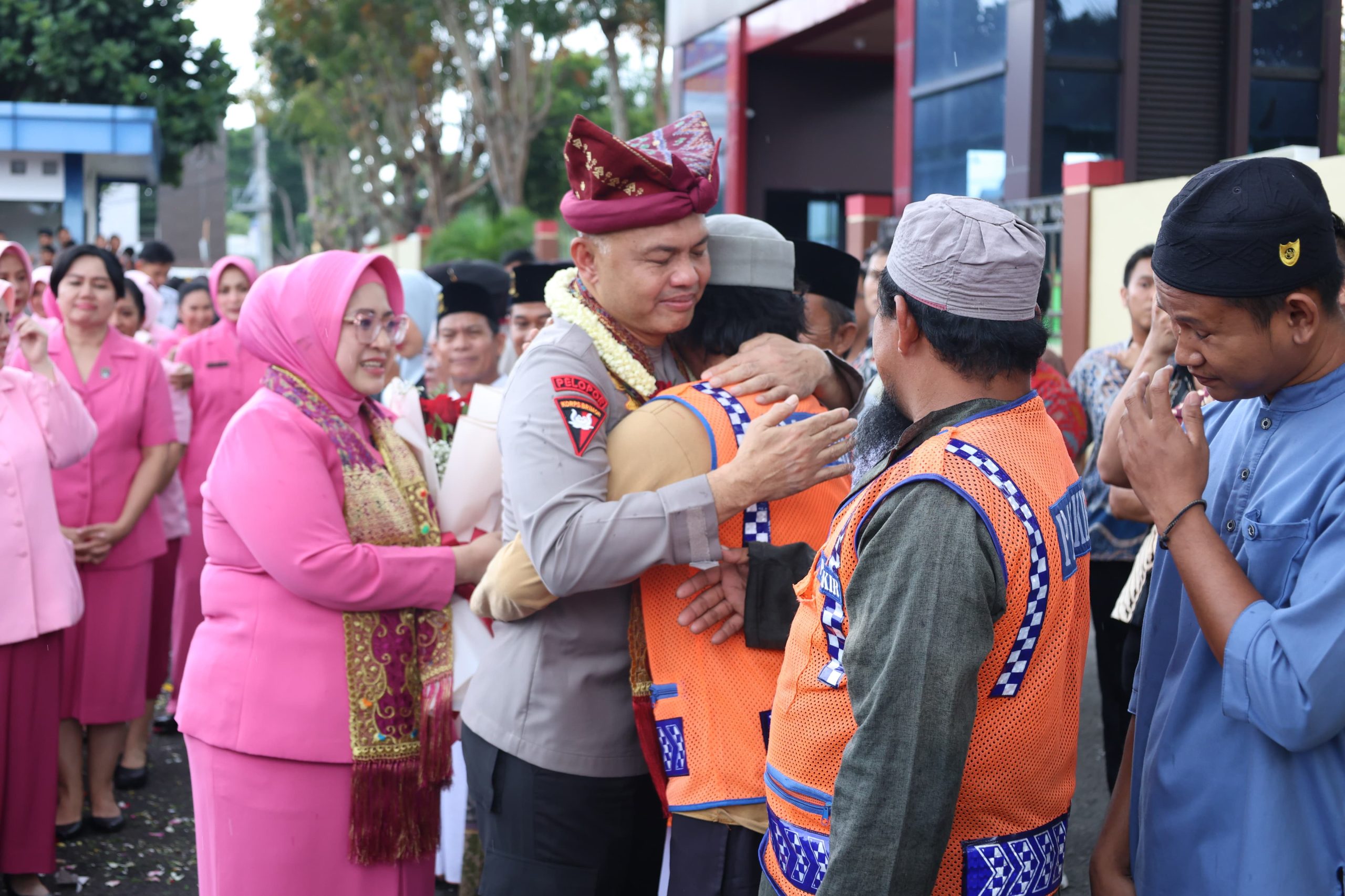 BABELTERKINI.COM, PANGKALPINANG – Suasana haru dan tangis menyelimuti pelepasan Irjen Pol Hendro Pandowo bersama sang Istri Ny. Novi Hendro Pandowo di Mapolda Bangka Belitung, Jumat (31/10/25).