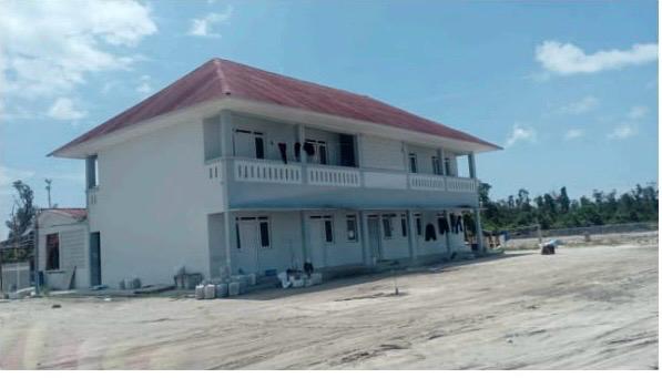 Caption: bangunan gedung mes karyawan PT BAB di Desa Penyu, Kecamatan Gantung